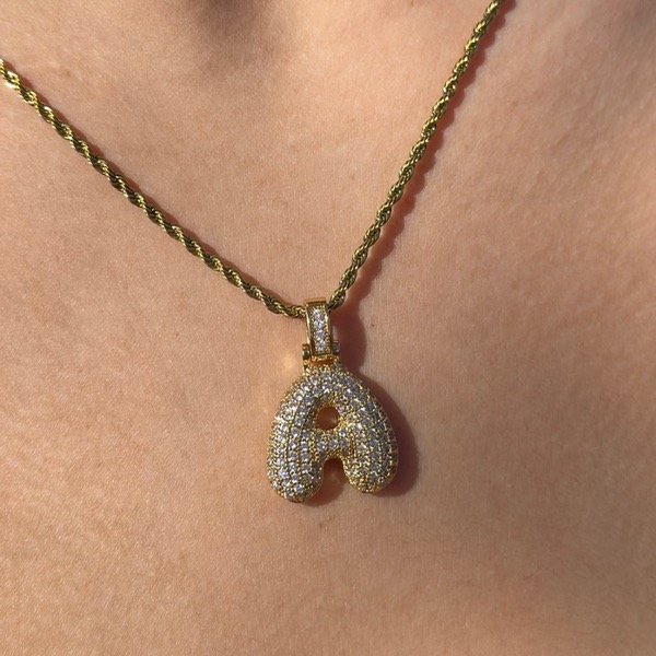 •Inicial fabricada en rodio con micro zirconias, drop (enganche) del mismo material.